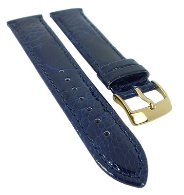 Uhrenarmband in 12mm, 13mm, 14mm, 15mm, 16mm, 17mm, 18mm, 19mm oder 20mm aus hochwertigem Straußenleder in eleganter Optik mit gelbgoldfarbener Schließe - rembordierte Kante, mit Naht