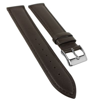 Uhrenarmband Classic > braun > schlichtes, solides Ersatzband aus Leder > Verfügbare Größen: 18mm, 20mm und 22mm > silberfarbene Dornschließe