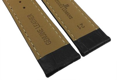 Jacques Lemans Uhrenarmband Leder 21mm schwarz Krokoprägung 40-6 42-6A