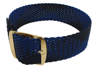 Uhrenarmband in blau/schwarz > gleichlaufend > Dornschließe: silber- oder gelbgoldfarben