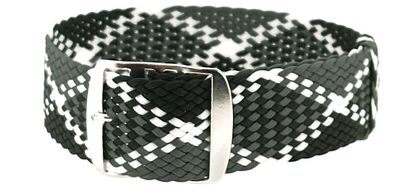 Uhrenarmband in grau/weiß/schwarz > gleichlaufend > Dornschließe: silber- oder gelbgoldfarben