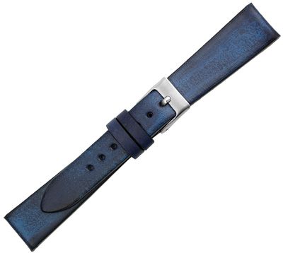 Minott Uhrenarmband Kalbsleder blau Handveredelt Vintage glatt flach