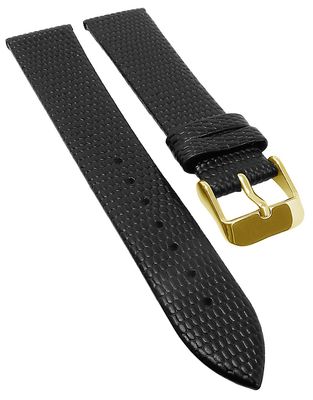 Minott Uhrenarmband Leder Eidechsenprägung flach schwarz Dornschließe