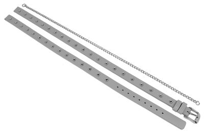 Material: Band aus Rindleder, mit Nieten silberfarben. Kette aus Edelstahl.
