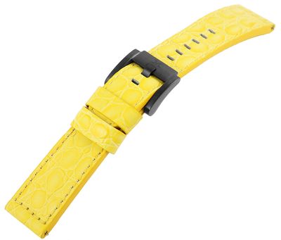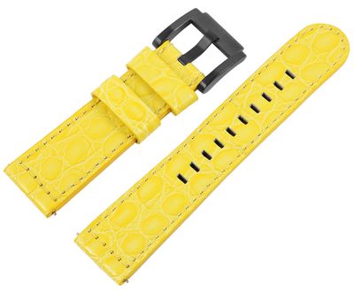 TW STEEL - Marc Coblen Ersatzband | 22mm | Lederband in gelb mit schwarzer Breitdornschließe | incl. Easy Click Federstege | Krokooptik